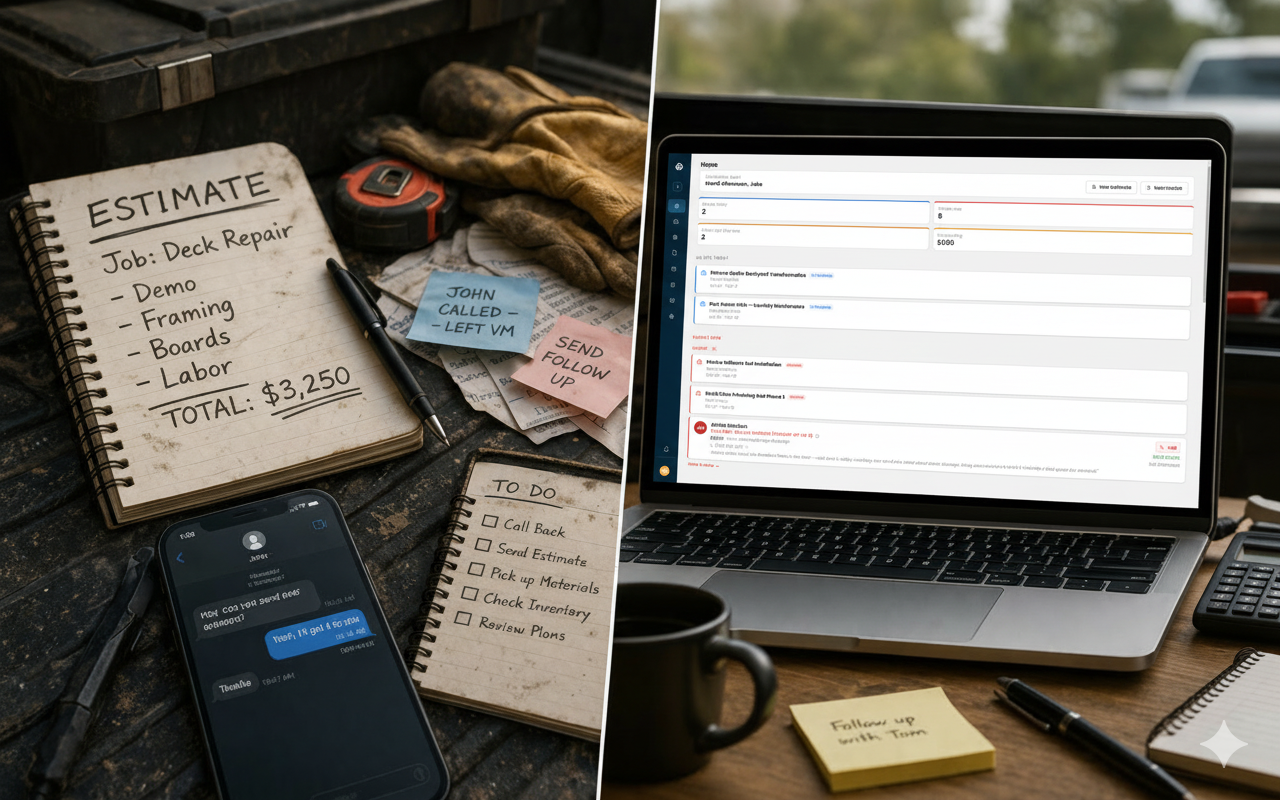 A contractor shows up, does great work, gives an honest price. Loses the job to someone who sent a nicer email. Not a better price. Not better skills. A better-looking proposal. A follow-up call two days sooner. A read receipt that told them the client was interested.